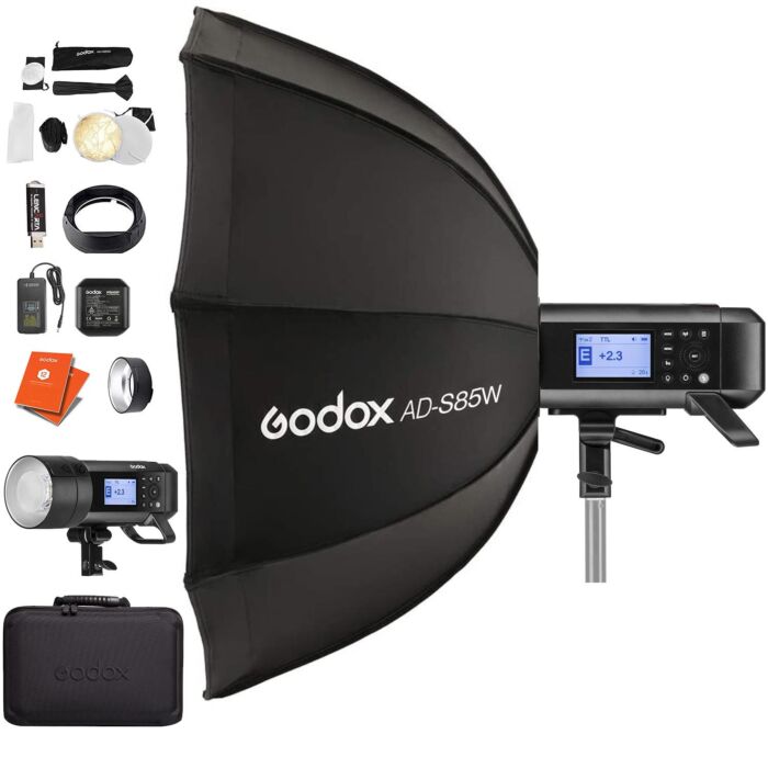 Kit This kit comes included with a Godox AD-S85W UV coated White softbox which connects directly to the Godox mount of the AD400Pro and offers softer, directed lighting