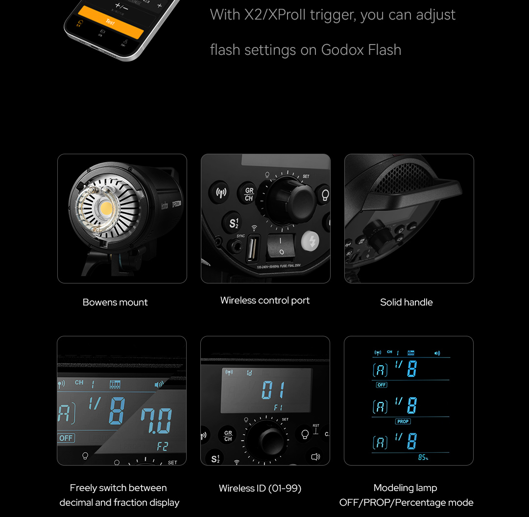 Equipped with a built-in 2.4GHz flash receiver, the DP400III V is compatible with GODOX X Series flash triggers, enabling remote control of power levels and the modeling lamp. Pair it with the Godox Flash app using X2 or XPro II triggers for even more functionality.