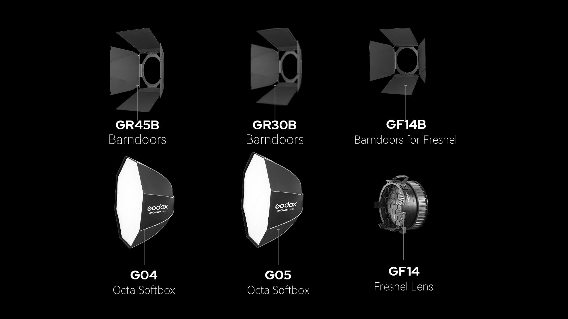 Featuring the innovative G-Mount, the MG2400Bi ensures enhanced safety for high-power fixtures. With scientifically crafted cooling vents, and high-quality materials resistant to high temperatures, G-Mount accessories guarantee safety all the time. And these accessories seamlessly adapt to both MG1200Bi and all upcoming Godox G-Mount fixtures.