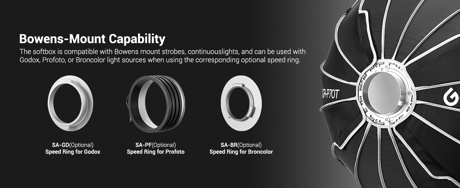 - 1 x Godox QR-P70T Quick Release Parabolic Softbox
