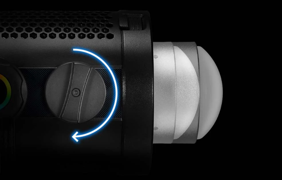 A built-in dial allows you to adjust the beam angle from 20° to 65°, offering flexibility in shaping light without needing to swap modifiers. This zoomable feature makes it easy to achieve the desired lighting aesthetic.