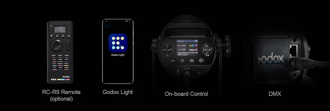 Control the SZ150R with its intuitive onboard panel, a 2.4GHz wireless remote (sold separately), or the Godox Light smartphone app via Bluetooth. This range of options ensures convenience and adaptability for any setup.
