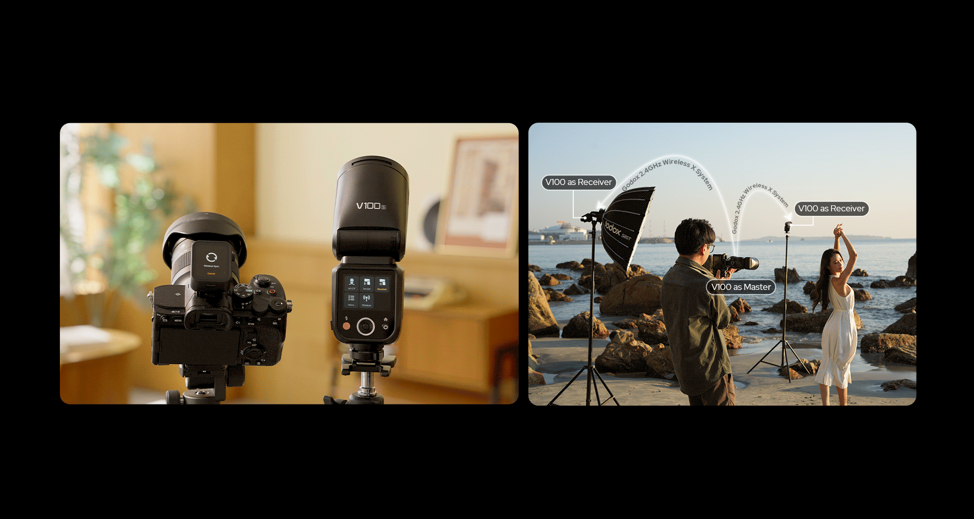 With the built-in Godox 2.4G Wireless X System, the V100 functions as both a master and receiver unit. Its one-tap pairing capability seamlessly integrates with the X3 trigger or other Godox wireless flash units, streamlining multi-flash setups and boosting productivity.