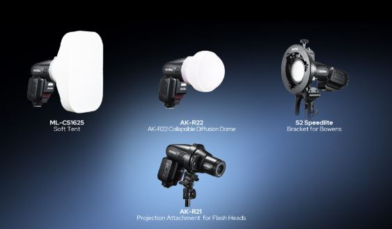 The V100 is compatible with a broad range of Godox accessories, including the AK-R1 Accessory Kit for Round Flash Heads, AK-R21 Projection Attachment, AK-R22 Collapsible Diffusion Dome, and the S2 Speedlite Bracket for Bowens, among others. Whether you're fine-tuning light, exploring creative effects, or expanding functionality, the V100 is designed to meet every need.