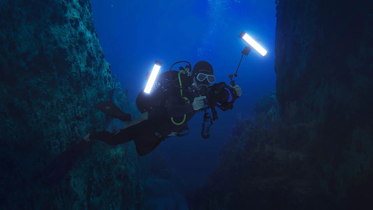 The Godox WT60R RGBWW Waterproof LED Dive Video Tube Light is suitable for both stills and video. It has a waterproof rating of IP68, meaning that it can be taken down to depths of up to 40m. The WTR Series Dive lights are RGBWW lights, giving you access to virtually any colour you can imagine. It also has a CCT mode that enables you to adjust the colour temperature of the light anywhere between 1,800K and 10,000K, enabling you to accurately match the colour of your ambient lighting. The WT60R LED dive light produces diffused, even lighting enabling you to easily illuminate your subjects with beautifully-soft lighting, at depths where the sunlight doesn’t quite reach. Featuring a selection of different Built-In Lighting Effects opens up a plethora of creative possibilities. The WT60R LED dive light has a CRI and TLCI rating of 96. making them suitable for professional broadcast use. Vloggers, Divers, Underwater photographers and videographers, as well as people who film extreme sports.