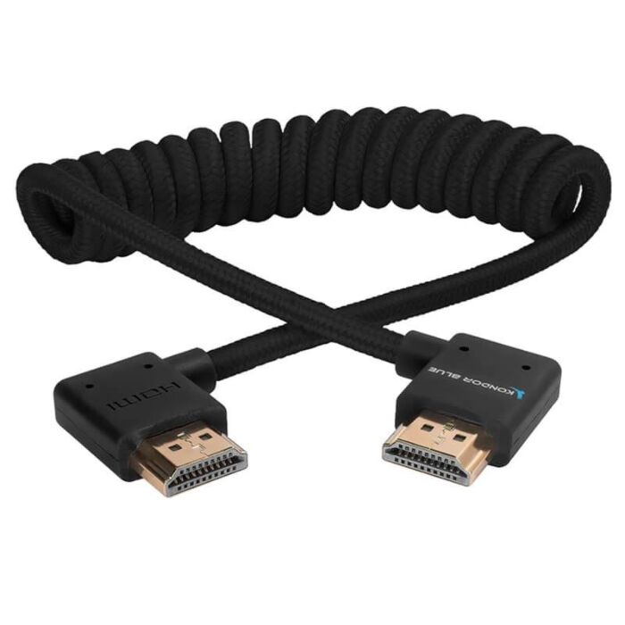 Kondor Blue KONFHDMI12RABK Right Angle Full HDMI Cable for On-Camera Monitors 12"-24" Braided Coiled