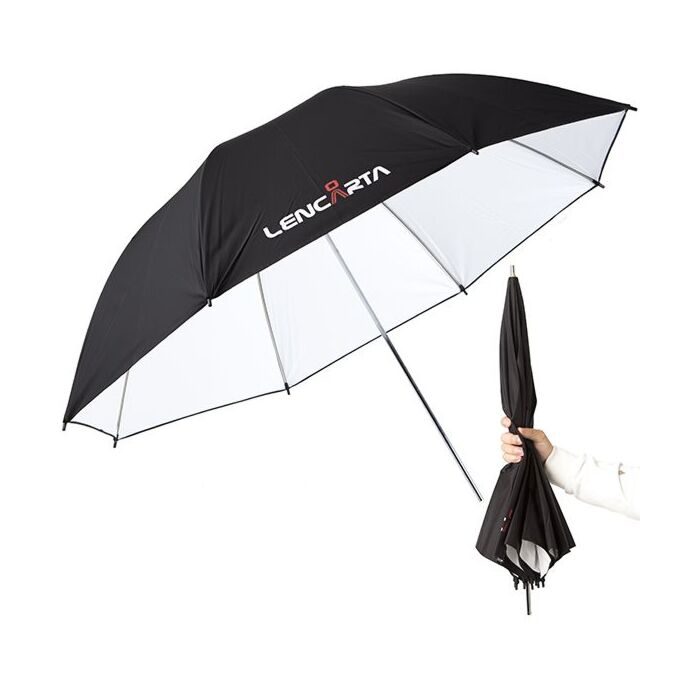 | Short Description | The Lencarta Studio Umbrella 100cm in white, is perfect for any home or professional photography studio. The reflective parabolic umbrella produces a fairly soft light, but with more clearly defined shadow transfer edges than a shoot-through (opaque) umbrella. Due to this, our reflective umbrellas are ideal for portrait, fashion, glamour and product photography, on top of this, they are very effective as hair lights. The 100cm Pro White Reflective Umbrella produces a much softer light with less specularity than the 100cm Pro Silver Reflective Umbrella.