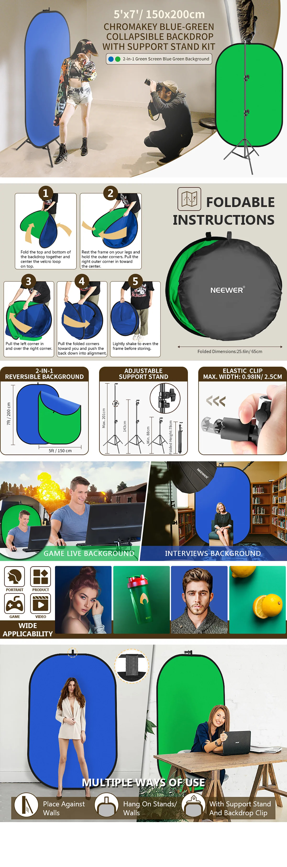 - Apply everywhere- You can hang this background from a tripod stand or a hook via the circle fitted on the top. You can also lean it against a wall or door on its frame to provide a background pretty much anywhere. Suitable for both indoor and outdoor use