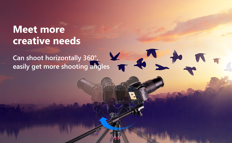 This boom arm supports 360 degrees rotatable horizontally and 180 degrees rotatable vertically. A rotatable and tilt-able Multi-angle center column enables the camera to be placed in a diverse position.