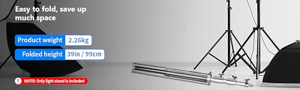 Collapsible Design- The light stand can fold down to a compact size for storage and transportation. Sandbags (sold separately) can be placed on the legs for added stability.