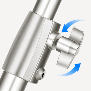 Adjustable Height- 46.5" - 102" /118cm - 260cm adjustable, telescopic stand with 3 sections offers a broad height range for flexible positioning. Locking knobs secure the stand with incredible strength.
