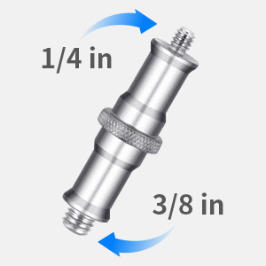 Reversible 1/4” to 3/8” Adapter- With 1/4” & 3/8" threaded ends, the universal screw adapter is compatible with different accessories and light fixtures. A 3-way mounting interface allows you to mount in vertical and horizontal orientations.