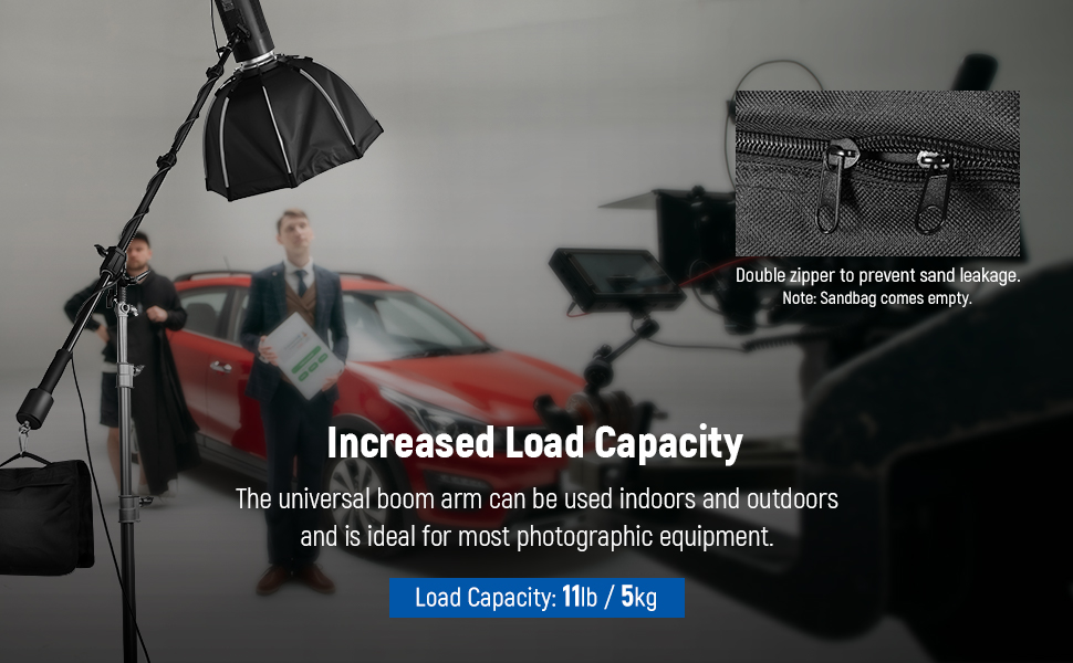 - Extra Stability with Counterweight and Sandbag- The included 1KG counterweight and sandbag help add extra stability when needed. Place them on the tripod legs to improve overall stand stability and prevent it from tipping over, or hang them on one end of the arm with the included metal hook to balance the boom arm when holding heavy objects. Note: the sandbag comes empty