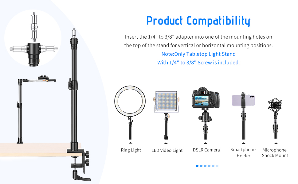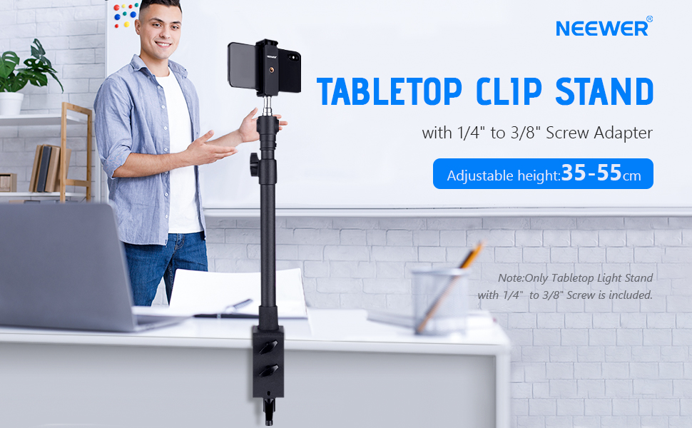 | Short Description | The Neewer Desk Mount Light Stand with adjustable height is great for supporting ring light, camera, smartphone, video light, and more. Perfect for makeup, interviews, lighting, live streaming, photo video shooting, zoom meeting, video conference lighting, etc. |