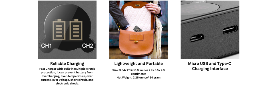 - BACKUP BATTERY: Give you a complete backup solution; Only a few hours to simultaneously recharge both batteries with the micro-USB 5V/2.1A input; Output: 8.4V/730mA; Note:Charging efficiency is determined by input current and voltage