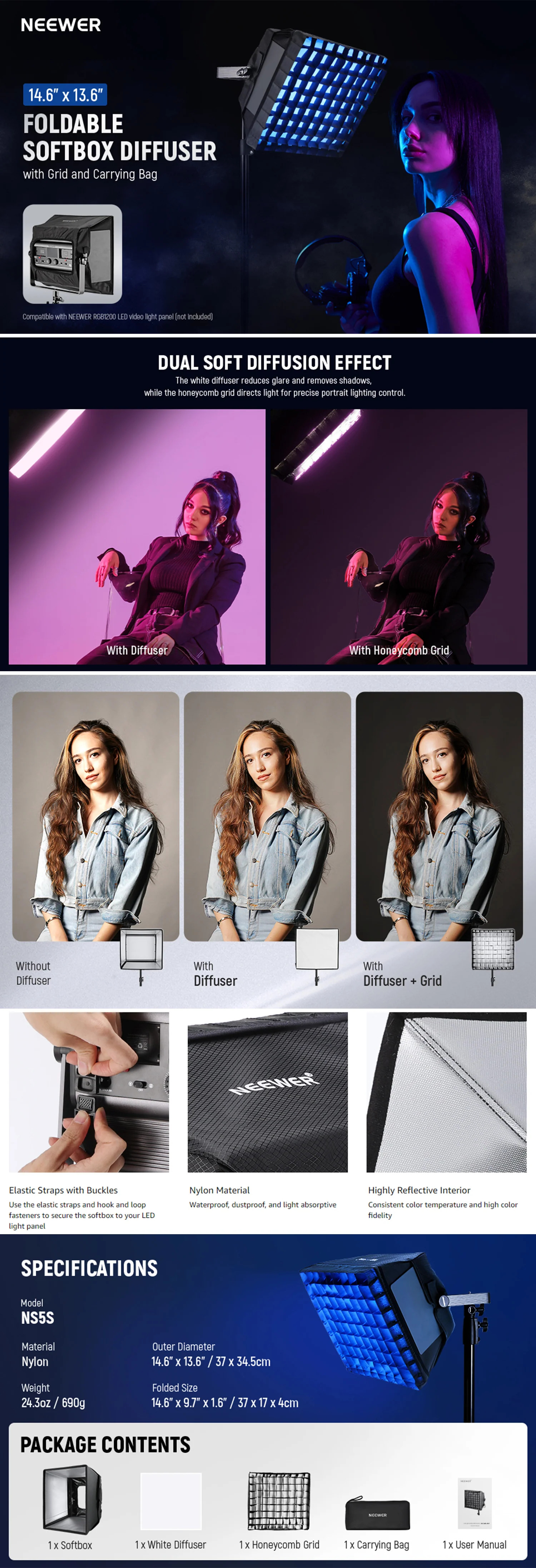 NEEWER NS5S Upgraded Softbox Diffuser For RGB1200