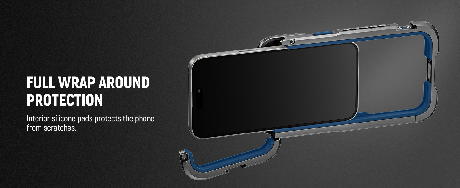 Built with solid CNC machined aluminum alloy, the case can resist scratches, bumps, and impacts, making it essential for outdoor vlogging and photography.