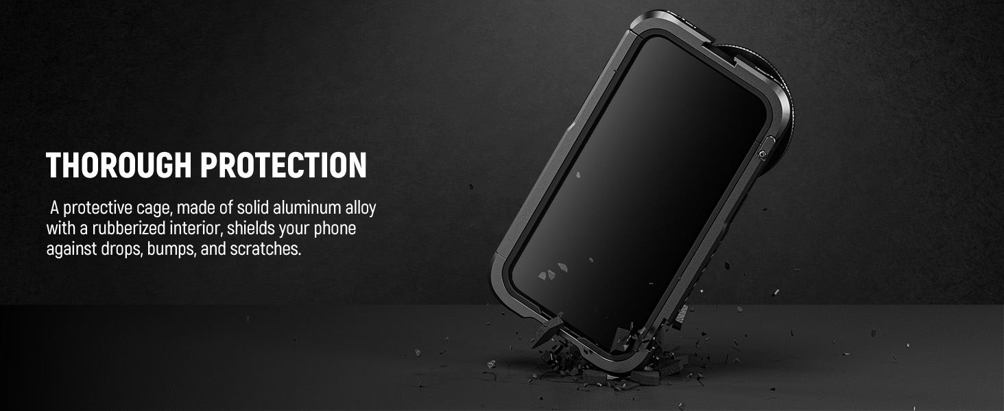 1 Click Installation & Full Access - This integrated phone cage opens and locks via a side button, which ensures a precise fit and keeps the camera lens, buttons, and charging port accessible. A cleaning cloth is included for wiping the screen, camera lenses, and filters.