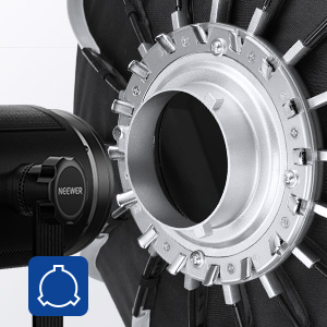 Attach Via Bowens Mount- Connecting via Bowens mount, the softbox is compatible with Aputure 120d Godox sl60w NEEWER CB150, CB100, CB60, RGB CB60, SL-70W, S101-300W PRO, S101-400W PRO, Vision 4, Vision 5, and other studio strobe lights and continuous LED video lights with bowens mount