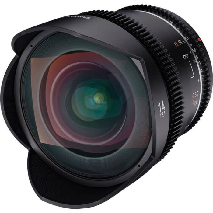 The Samyang VDSLR 14mm T3.1 MK2 is a compact, high quality, fast prime cine lens, available in several mounts. It has full-frame coverage and is optimised for use on video, DSLR and mirrorless cameras.