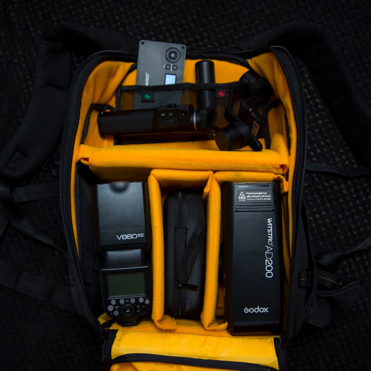 ur recommendation for this need is the Godox CB-17 Portable Backpack/ Roller Case. For a profession so focussed on transport and movement, this bag is a perfect fit! The ability to use this bag as both a backpack or roller case makes transport an easy task wherever you may find yourself! The bag is equipped to safely store all lighting equipment, such as portable flash heads, batteries or any accessories, yet also has two exterior straps to carry tripods or light stands. Filled with internal padding and made using a thick Nylon, this product will keep your equipment perfectly safe before, during, and after your shoot.