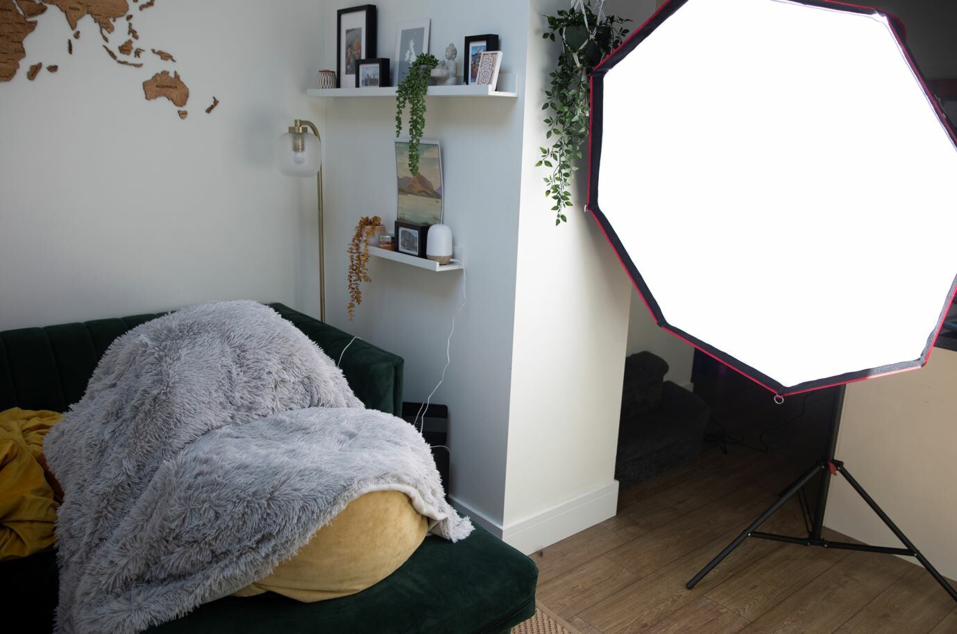 Once I had the light in place I experimented with positioning and decided to aim the light pointing slightly off-centre (called “feathered lighting”). This allowed me to light Robbie with light spilling from the edge of the modifier. This created a much softer light than more straight on directional light which can be a little harsher.