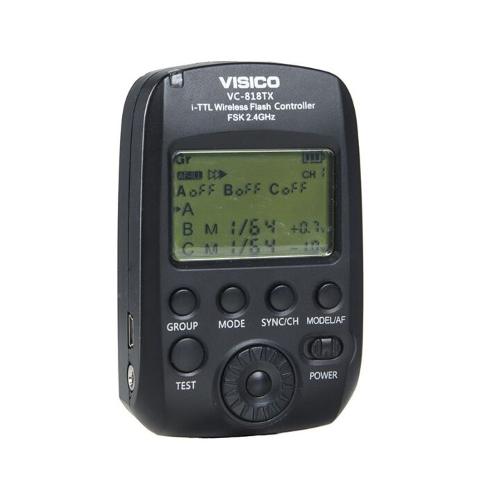 | Short Description | The Visico HSS/TTL Wireless flash trigger is engineered to work with Nikon TTL system and applies to Nikon cameras. You can use VC-818TX transmitter on camera to trigger remote VISICO5 or VISICO2 studio flash or other brands TTL speedlites and studio flashes attached to VC-818RX receivers.