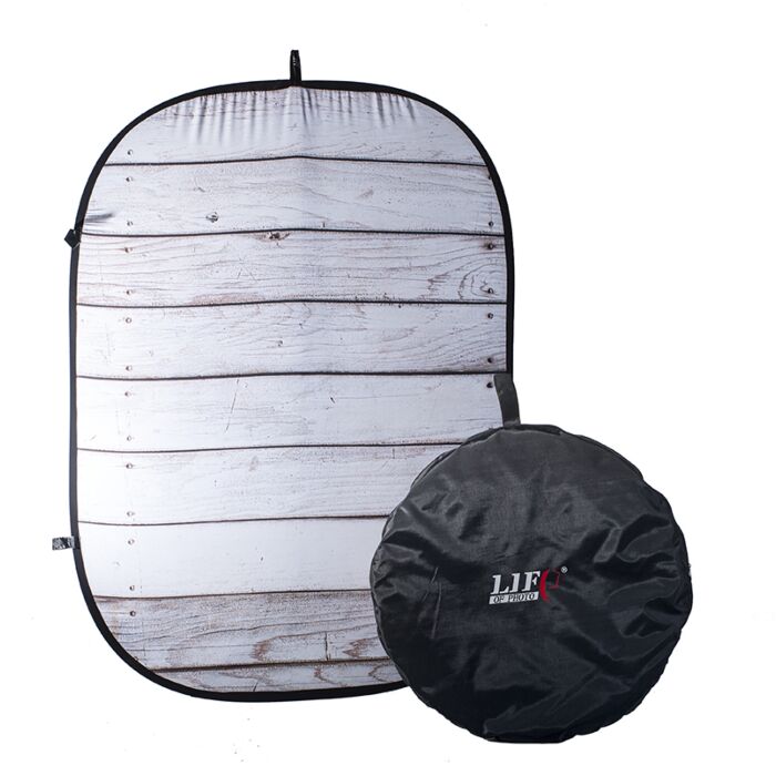 This collapsible folding photorealistic background is designed to look like a set of washed out or stressed wooden boards/planks. This allows you to create an outdoor look and style in an instant, no matter where you are. Bring the outdoors in, and make your photography pop with something new and unique